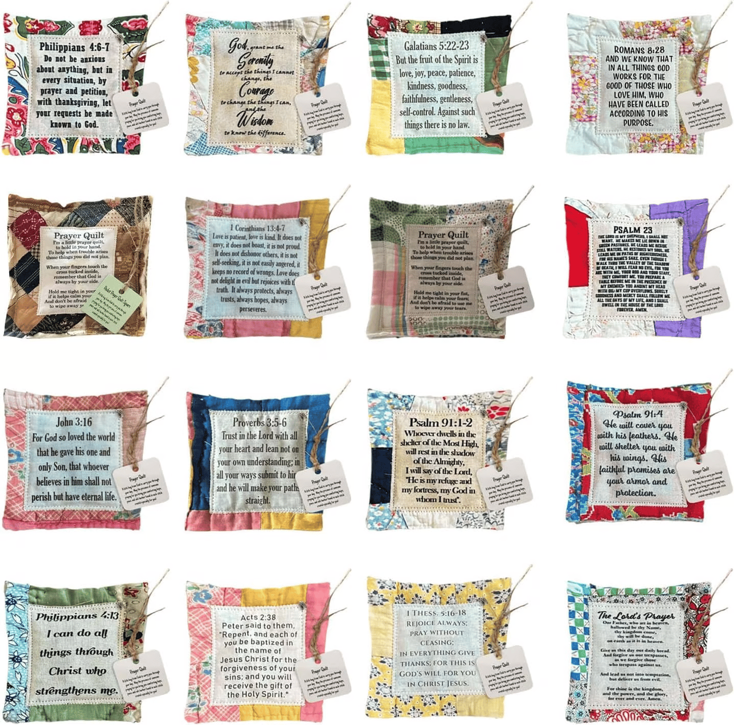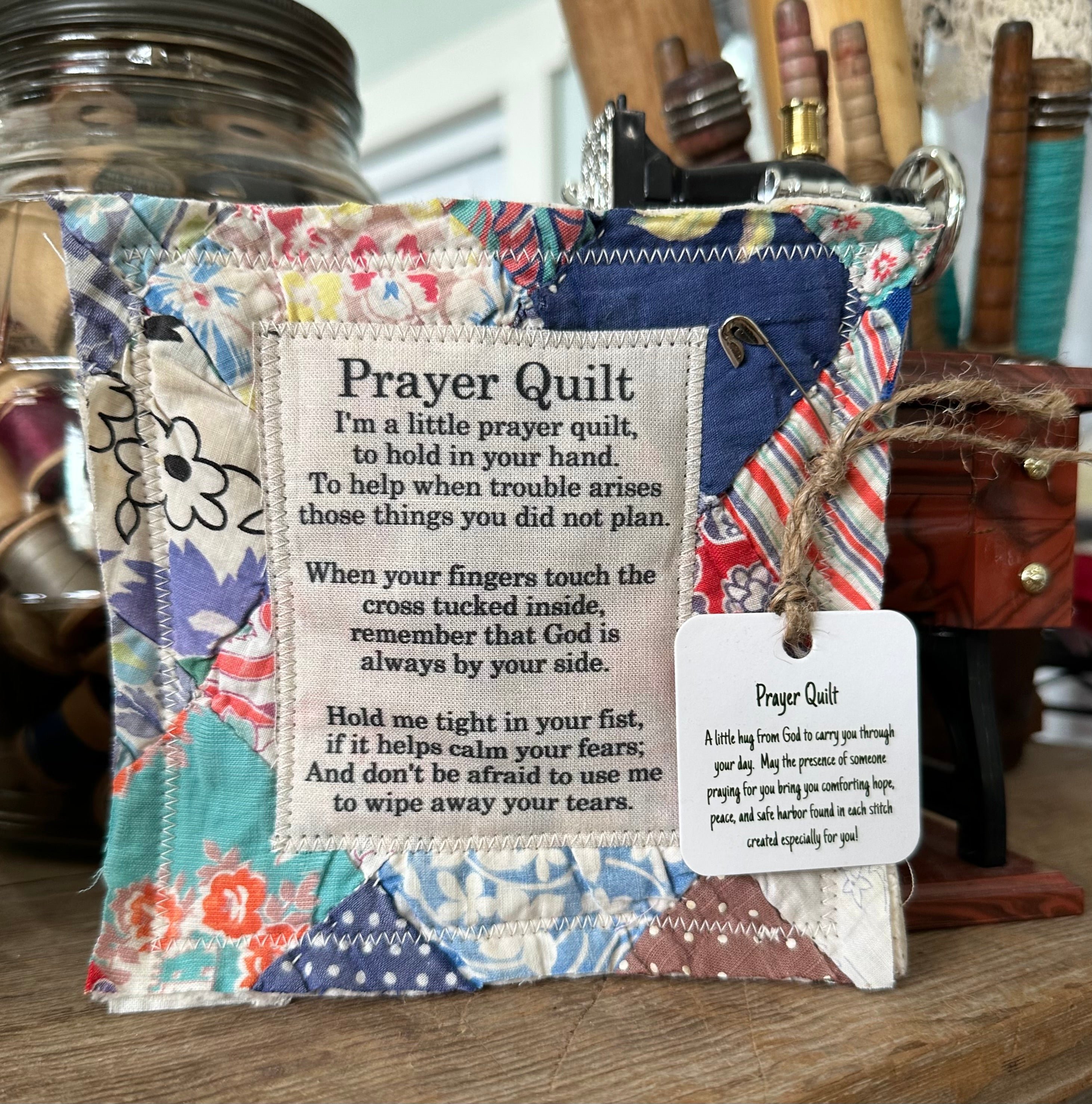 💚The poems are sewn onto carefully selected vintage quilts, and there is a wooden cross sewn into the center of each quilt square, so each time you touch it, you can be reminded that God is always with you.